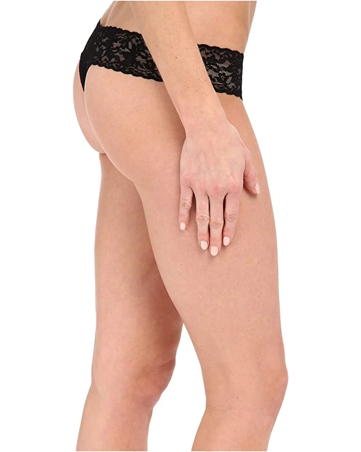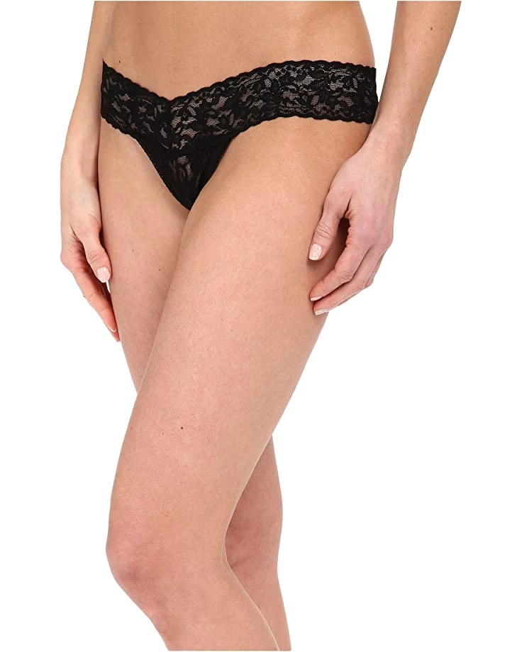 - Soft signature lace thong has a low rise that sits below the hips.