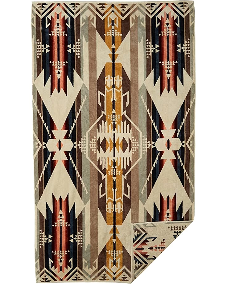 - Oversized towel with Native American-inspired designs.