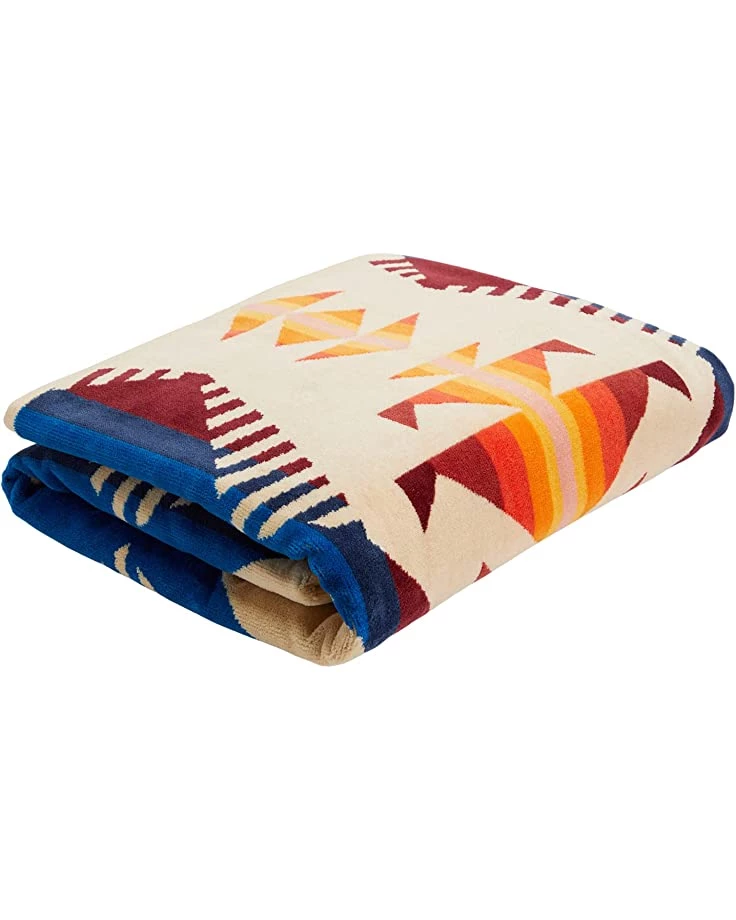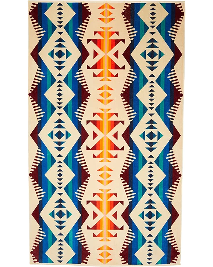 - Pendleton® spa towel boasts an intricate Native American-inspired print.
