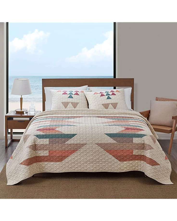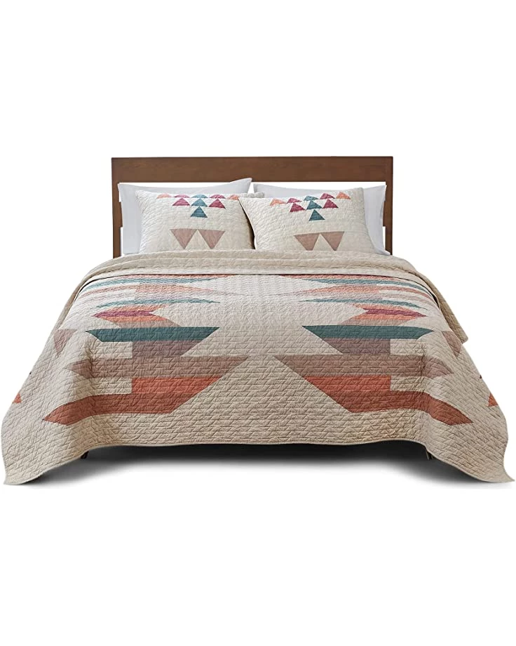 - Southwestern-inspired quilt set featuring multicolored abstract pattern.