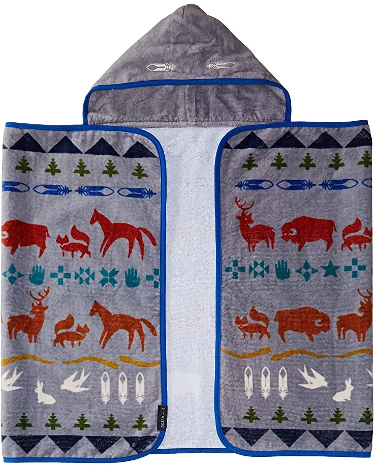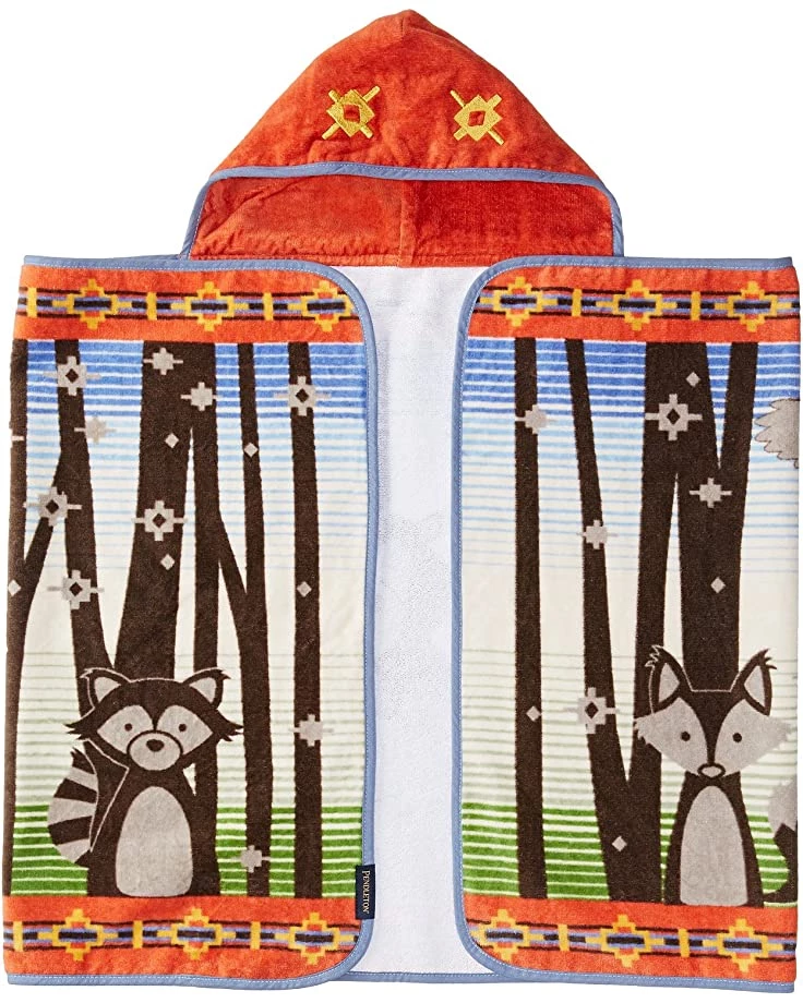- Cozy up with the little one after bathtime with the Pendleton® Printed Hooded Baby Towel.