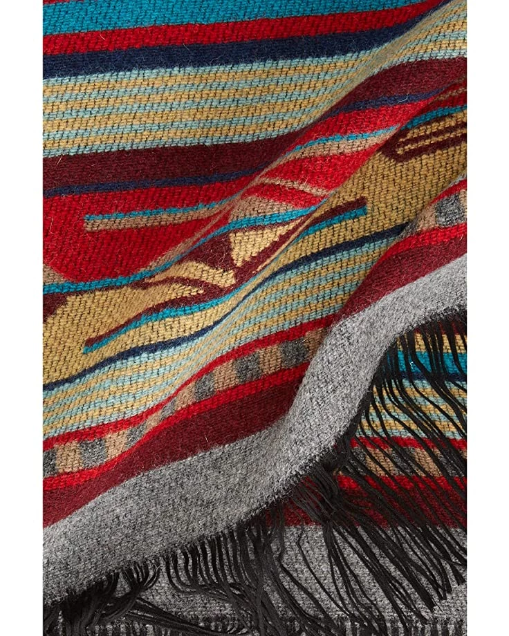 - Wool throw features a Spanish and Navajo-inspired motif to honor the textile traditions of the Southwest.